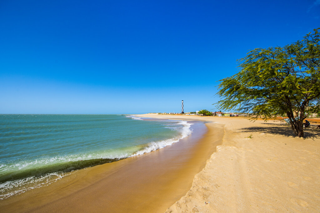 Pouco badalada, a Praia de Cacimbinhas fica no município de Tibau do Sul, no litoral sul do Rio Grande do Norte, a aproximadamente 80 km de Natal. A areia é fina e branca e o mar varia entre tons de azul-turquesa e verde- esmeralda. Sua pequena extensão – tem cerca de 600 metros de comprimento – contribui para seu charme aconchegante. O cartão-postal, no entanto, são as falésias. Com cores que variam do vermelho ao amarelo, elas criam um contraste único com o azul do mar. Na maré baixa, formam-se piscinas naturais, ideais para um banho tranquilo.
