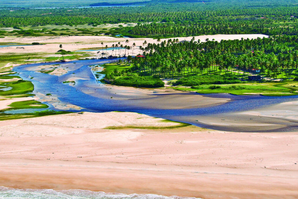 Pouco badalada, a Praia de Cacimbinhas fica no município de Tibau do Sul, no litoral sul do Rio Grande do Norte, a aproximadamente 80 km de Natal. A areia é fina e branca e o mar varia entre tons de azul-turquesa e verde- esmeralda. Sua pequena extensão – tem cerca de 600 metros de comprimento – contribui para seu charme aconchegante. O cartão-postal, no entanto, são as falésias. Com cores que variam do vermelho ao amarelo, elas criam um contraste único com o azul do mar. Na maré baixa, formam-se piscinas naturais, ideais para um banho tranquilo.