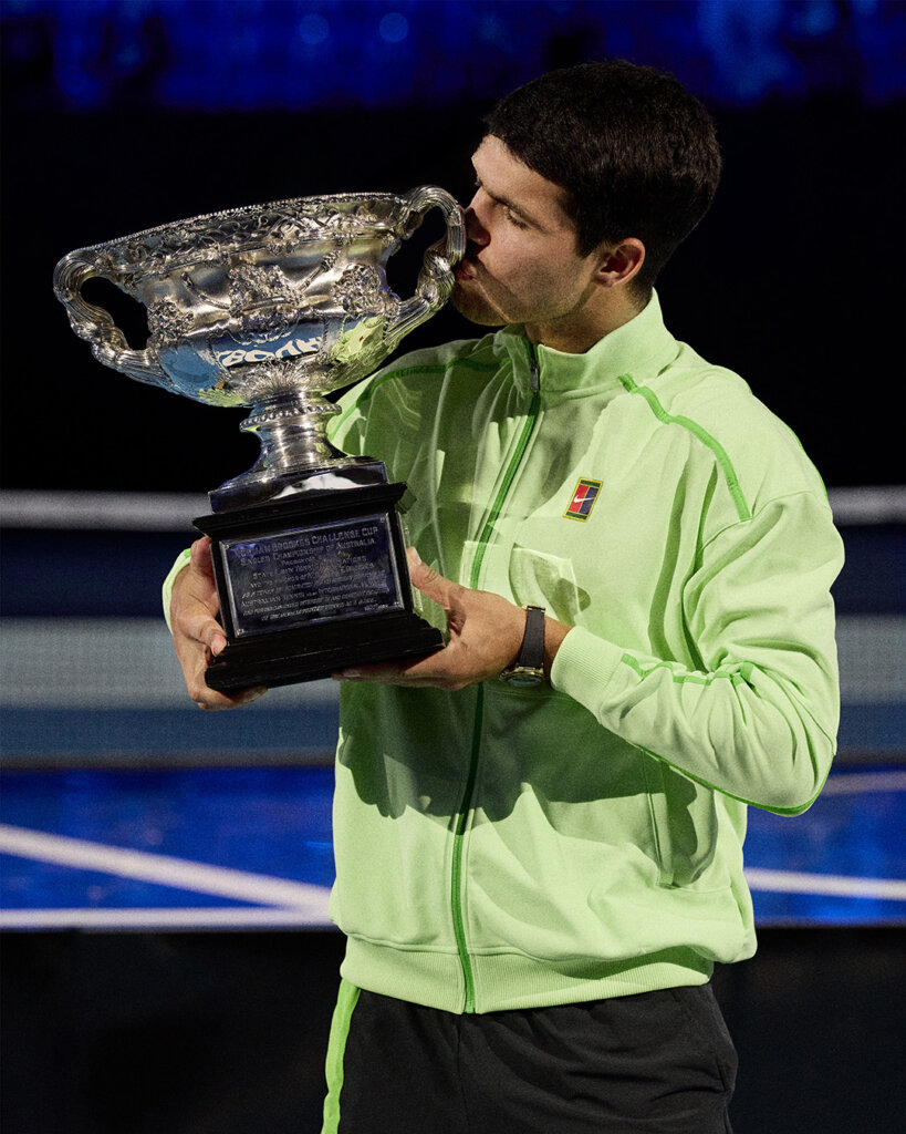 Carlos Alcaraz, Louis Vuitton Ambassador, vence pela primeira vez o Australian Open na final masculina, após uma partida disputada em quatro sets contra Novak Djokovic.
