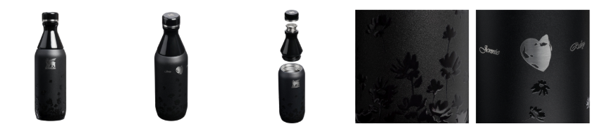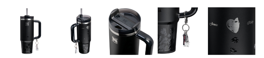 No centro da coleção estão dois novos produtos da linha Luxe, que oferecem uma experiência premium para quem deseja elevar seus itens de hidratação. O novo Quencher Luxe, de 887 ml, tem o estilo ousado e fashion de Jennie. O copo apresenta base de silicone, alça translúcida de Tritan™ e logo gravado, garantindo um visual sofisticado. Charms colecionáveis com toques pessoais da artista, incluindo o NINIBARA (um design exclusivo de capivara criado por ela), um urso e uma plaquinha com seu nome, adornam o Quencher Luxe. A coleção também apresenta a Slim Bottle Luxe, de 354 ml, uma garrafa leve, portátil e naturalmente elegante.