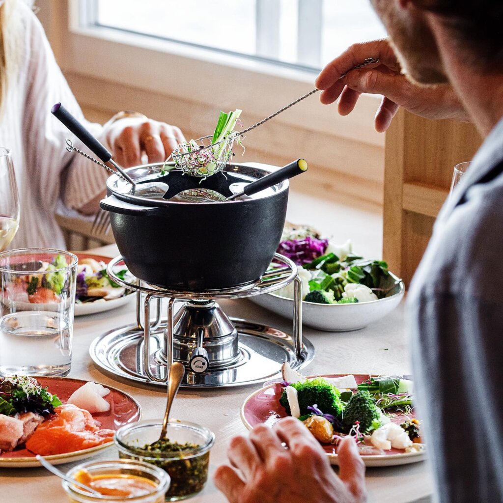 Um deles é o Fischerstube, construído em um píer, que serve um famoso foundue de peixe e vistas para o pôr do sol. O prato para dividir é servido com peixes de água doce, como trutas e salmão suíço, acompanhados de vegetais em conserva e caldo de legumes.