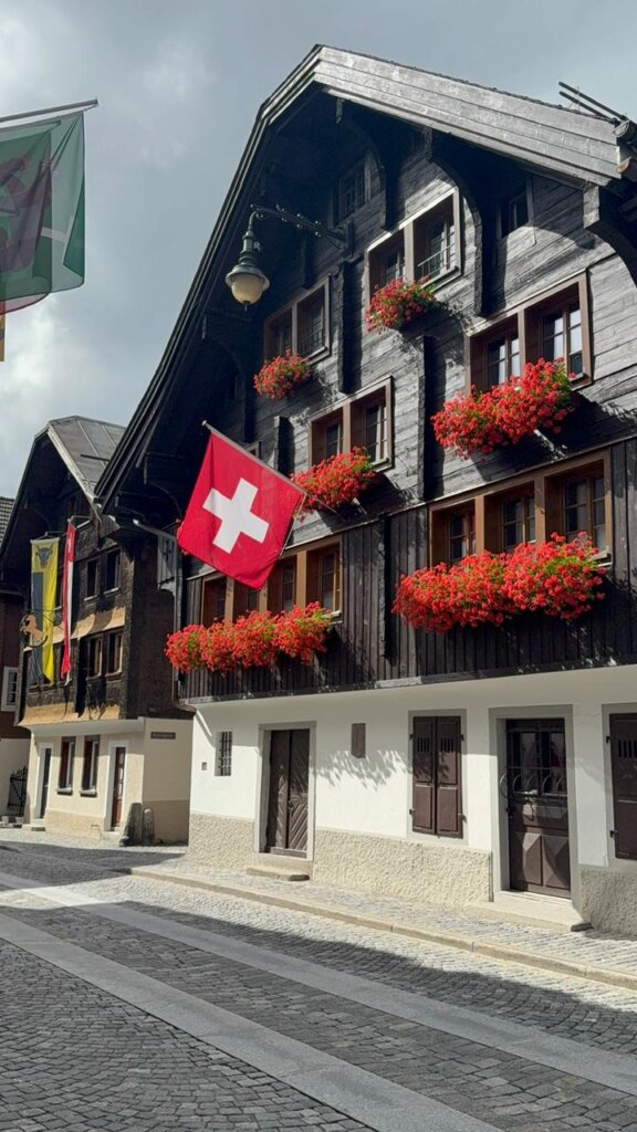 Interlaken é o destino perfeito para terminar esta jornada sem pressa. Entre os lagos Thun e Brienz, a cidade vive do encontro das águas com os Alpes, e talvez por isso, tenha aprendido a respeitar o tempo. Há sempre uma montanha a contemplar, uma lancha ancorada e um café servido com vista para o azul.