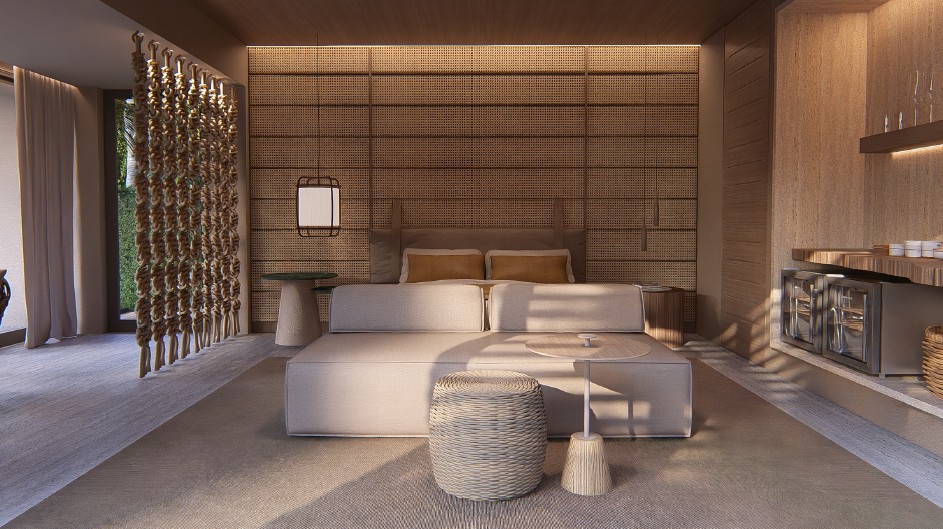 Sua estrutura enxuta, com apenas 20 bangalôs, reforça o compromisso com baixa densidade construtiva e integração à paisagem costeira. A arquitetura privilegia materiais e soluções que dialogam com o entorno, preservando a vegetação nativa e valorizando a escala do destino.