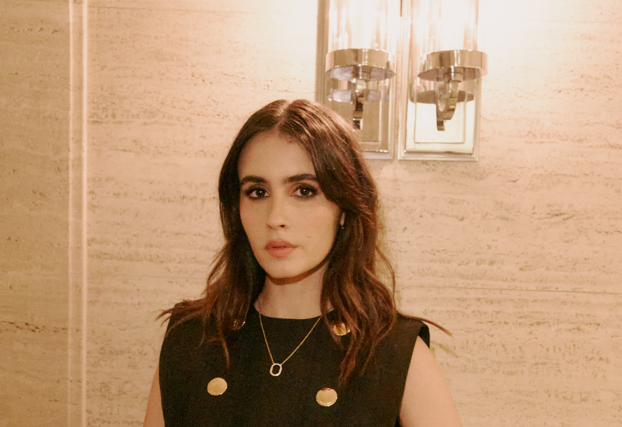 Valentina Herszage usa top plissado com botões frontais e saia plissada, peças da coleção Women’s Cruise 2026 por Nicolas Ghesquière, bolsa Petite Malle e pumps Urban Twist.